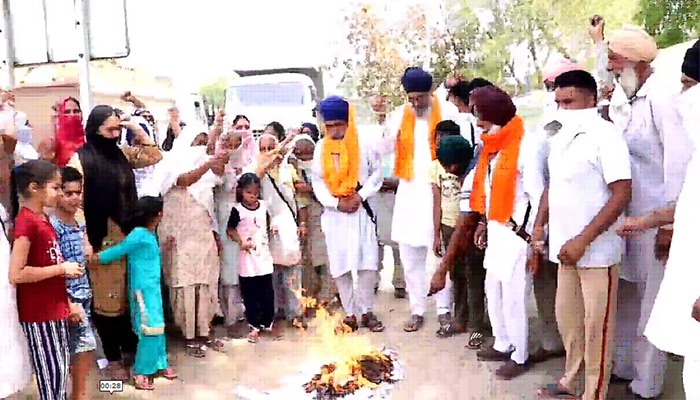 ਲਹਿਰਾਗਾਗਾ ‘ਚ ਸਿੱਖ ਜਥੇਬੰਦੀਆਂ ਨੇ ਸੁਪਰੀਮ ਕੋਰਟ ਦੀਆਂ ਕਾਪੀਆਂ ਸਾੜ੍ਹਕੇ ਰੋਸ ਪ੍ਰਗਟਾਵਾ ਕੀਤਾ।ਪ੍ਰਦਰਸ਼ਨ ਦੌਰਾਨ ਉਨ੍ਹਾਂ ਦੋਸ਼ ਲਾਇਆ ਕਿ ਰਾਜਨੀਤਿਕ ਲੋਕ ਇਕ ਦੂਜੇ ਦੇ ਸਾਥੀ ਹਨ ਜਿਨ੍ਹਾਂ ਨੇ ਹਮੇਸ਼ਾ ਆਪਣੇ ਹਿੱਤਾਂ ਅਤੇ ਲਾਲਚ ਲਈ ਸਿੱਖ ਪੰਥ ਅਤੇ ਪੰਜਾਬ ਦਾ ਸਹਾਰਾ ਲਿਆ ਹੈ|ਸੰਗਰੂਰ ਦੇ ਲਹਿਰਾਗਾ ਵਿਖੇ ਸਿੱਖ ਭਾਈਚਾਰੇ ਦੇ ਲੋਕਾਂ ਨੇ ਸ੍ਰੀ ਗੁਰੂ ਗ੍ਰੰਥ ਸਾਹਿਬ ਜੀ ਦੇ ਬੇਤੁਕੀ ਮਾਮਲੇ ਵਿਚ ਹਾਈ ਕੋਰਟ ਦੇ ਫੈਸਲੇ ਤੋਂ ਨਾਰਾਜ਼ ਹਾਈ ਕੋਰਟ ਦੇ ਫੈਸਲੇ ਦੀਆਂ ਕਾਪੀਆਂ ਸਾੜ ਕੇ ਨਾਅਰੇਬਾਜ਼ੀ ਕੀਤੀ।ਉਨ੍ਹਾਂ ਕਿਹਾ ਕਿ ਧਰਮ ਦੀ ਬੇਧਿਆਨੀ ਉਸ ਦੇ ਪਤਨ ਦਾ ਕਾਰਨ ਬਣੇਗੀ। ਇੱਥੇ ਪ੍ਰਦਰਸ਼ਨਕਾਰੀਆਂ ਨੇ ਇਸ ਮੁੱਦੇ ‘ਤੇ ਸਰਕਾਰਾਂ‘ ਤੇ ਨਿਸ਼ਾਨਾ ਸਾਧਿਆ, ਜਦਕਿ ਅਦਾਲਤ ਦੇ ਫੈਸਲੇ ‘ਤੇ ਵੀ ਸਵਾਲ ਖੜੇ ਕੀਤੇ। ਇਸ ਪ੍ਰਦਰਸ਼ਨ ਵਿਚ ਔਰਤਾਂ ਵੀ ਵੱਡੀ ਗਿਣਤੀ ਵਿਚ ਸ਼ਾਮਲ ਸਨ, ਉਨ੍ਹਾਂ ਦਾ ਗੁੱਸਾ ਬੇਰਹਿਮੀ ਦੇ ਨਾਲ ਨਾਲ ਇਸ ਮੁੱਦੇ ‘ਤੇ ਸ਼ਹਾਦਤ’ ਤੇ ਸੀ।
